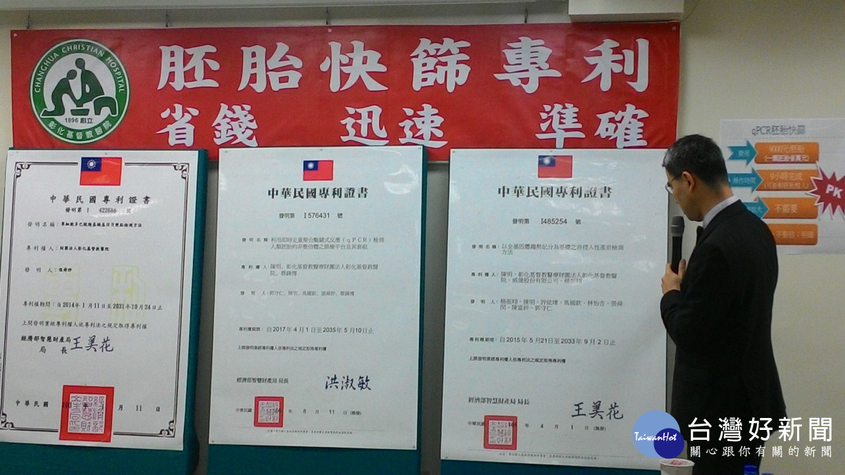 世界唯二,亞洲第一,彰基qPCR胚胎快篩獲專利!彰化基督教醫院基因醫學部進行胚胎著床前基因診斷以及篩選,成果斐然,發表相關國際論文八篇,獲中華民國專利三件,並且在今年應台灣醫誌之邀,撰寫有關胚胎著床前遺傳診斷以及篩檢的回顧性論文,由本部主任陳明醫師主筆。