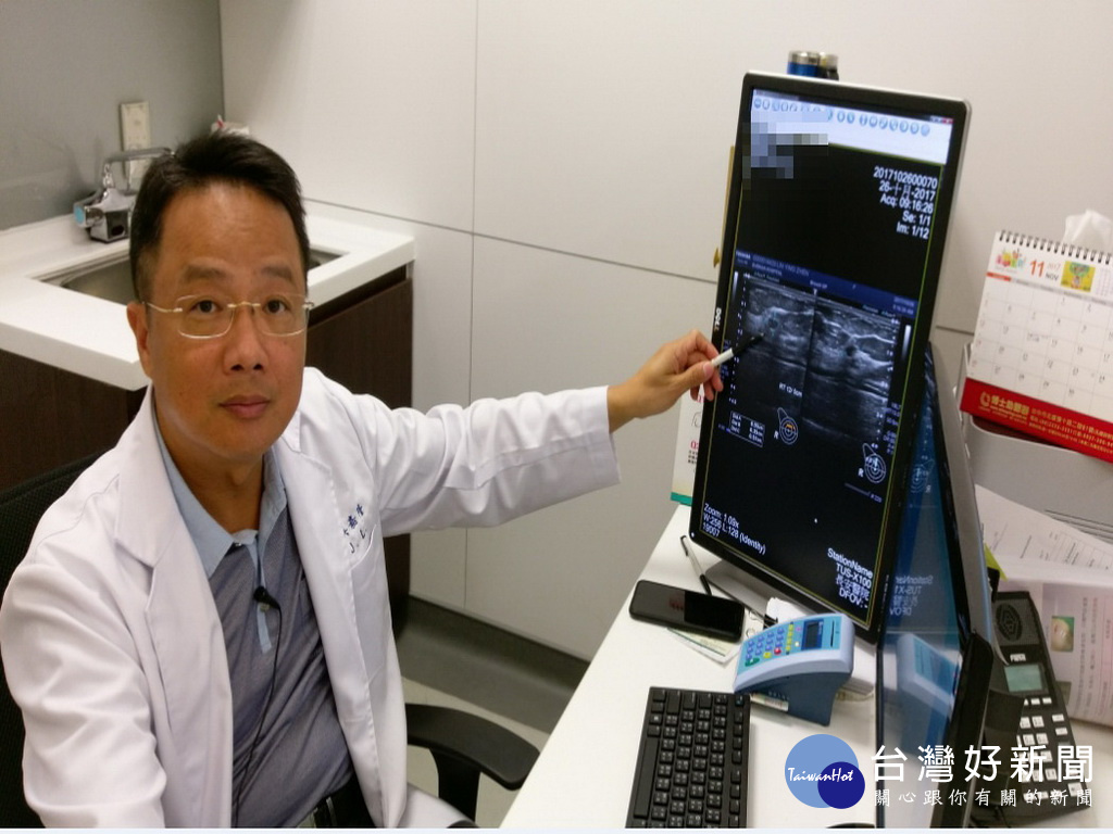 醫生指著乳房腫塊。林重鎣攝