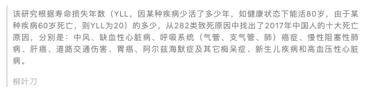 不久前,世界著名期刊《柳恭弘=叶 恭弘刀》發表了一篇名為《1990-2017年中國及其各省的死亡率、發病率和危險因素:2017年全球疾病負擔研究的一個系統分析》的研究,該研究主要是由中國疾病預防控制中心與美國華盛頓大學健康測量及評價研究所(IHME)合作完成,是一項關於中國人口健康的全面研究報告。