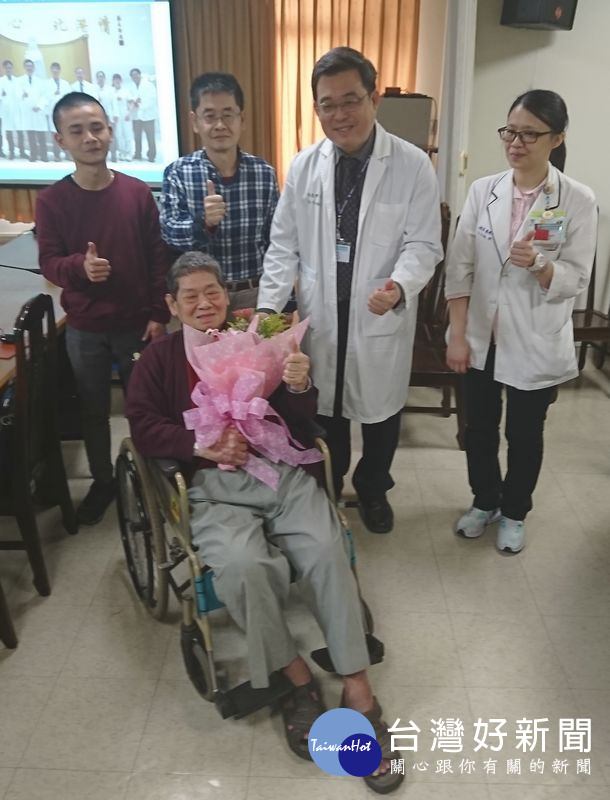 77歲的林姓老翁因多前年裝置的人工膝關節出現感染現象,紅腫痛且不良於行,又因擔心傳統開刀清創後會影響其行動,月前經轉診至中國醫藥大學北港附設醫院後,獲知有獨創專利的「暫時性人工膝關節手術」,始答應置換由3D列印技術製作出來的「活動式抗生素骨水泥假體」,協助人工膝關節術後感染重建,經過一個月的術後休養與復建,帶著感恩的笑容歡喜出院。