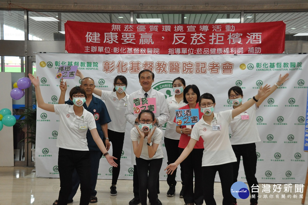 彰化基督教醫院號召社區民眾、志工、口腔癌友,共同於6月1日禁菸節前夕舉辦「健康要贏‧反菸拒檳酒」 – 拒菸、反檳、節酒相關衛教宣導活動,期望透過宣導降低本縣民眾之菸、酒、檳榔使用率。