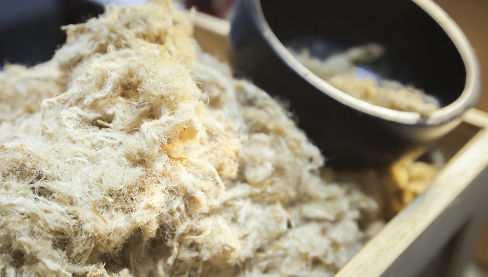 3.看外觀――優質的肉鬆顏色應為金黃或者淡黃色,呈疏鬆的絮狀,有肌肉紋路,無明顯結塊。