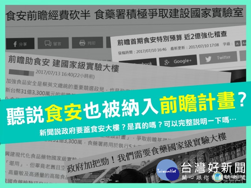 衛福部食藥署也特別製作懶人包,讓民眾更容易了解各項子計畫內涵,以現代化食品藥物國家級實驗大樓及教育訓練大樓興建計畫來說,透過建置整合雲端資訊管理、智慧型綠能建築、全面性水資源處理、潔淨度控制之耐震與防磁干擾之現代化食品藥物國家級實驗大樓等規劃,完成後可導入高精密食品藥物檢驗設備,提高不法食品摻偽、食品摻加不法西藥類緣物等鑑驗效率,作為食品藥物法規與檢驗訓練基地。