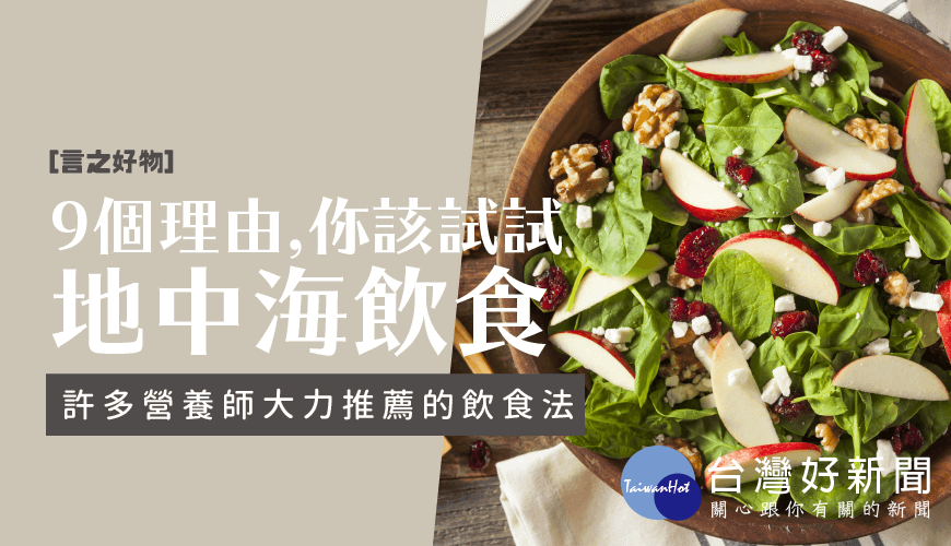 「地中海飲食」是強調吃食材原味的一種健康飲食型態,以魚、堅果、油品、香草、全穀類、蔬果為重要特色,不需刻意減少熱量、不多加調味料、以天然食材調味的方式烹煮,是許多營養師大力推薦的飲食方法,連美國醫學網站medicinenet.com也提出的9個採用地中海飲食的主要理由: