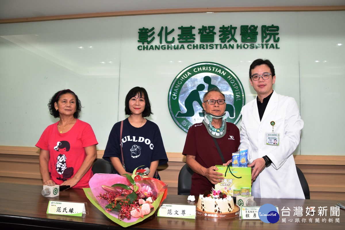越籍退休警官范文尊,20餘年來上下肢體尤其左側半邊,漸漸失去知覺,近2年大小便如廁愈趨困難,走路需聳左肩,步態彷如電影「惡靈古堡」殭屍,經向員林基督教醫院求助,確認是頸椎神經嚴重壓迫,手術時使用超音波骨刀,移除骨刺壓迫神經,術後2天即出院,走路姿勢恢復正常,大小便也變暢通,讓他露出燦爛的笑容。