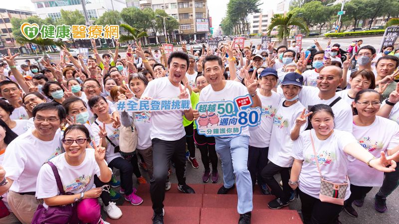 為了讓肺阻塞患者能及早發現、及早治療,台灣胸腔暨重症加護醫學會在全台北中南巡迴舉辦「超越50、邁向80」一分鐘護你肺全民登階挑戰活動,以全台尚未自覺肺阻塞的40萬人為目標,邀請全民共同進行一分鐘登階檢測,踏出40萬階!日前已在完成台北、台中號召近千人完成28萬階,11月14日在高雄舉辦壓軸場。高雄長庚醫院胸腔內科主治醫師蘇茂昌鼓勵民眾透過「一分鐘登階自我檢測」檢視自身肺功能,若一分鐘爬不到30階就喘到無法繼續,則可能是肺阻塞高危險族群,建議盡快至胸腔內科進一步檢查。