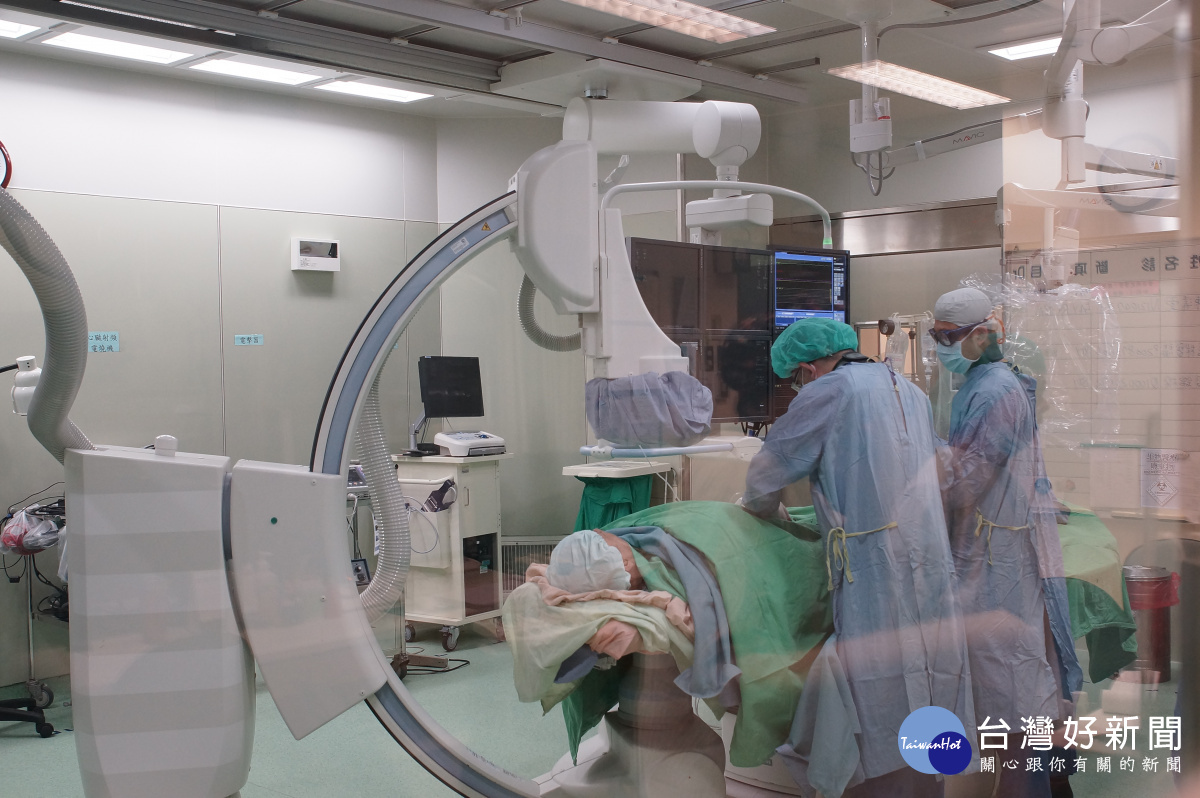 97歲謝阿嬤因嚴重的胸痛、冒冷汗、喘,到急診求醫,經診斷為心肌梗塞,共有三條血管阻塞,合併左主幹狹窄,傳統需要做繞道手術治療,但因患者年事已高,手術風險大,最後由心臟內科醫師成功為其以心導管打通血管,放置4支支架,兩天後即順利出院。