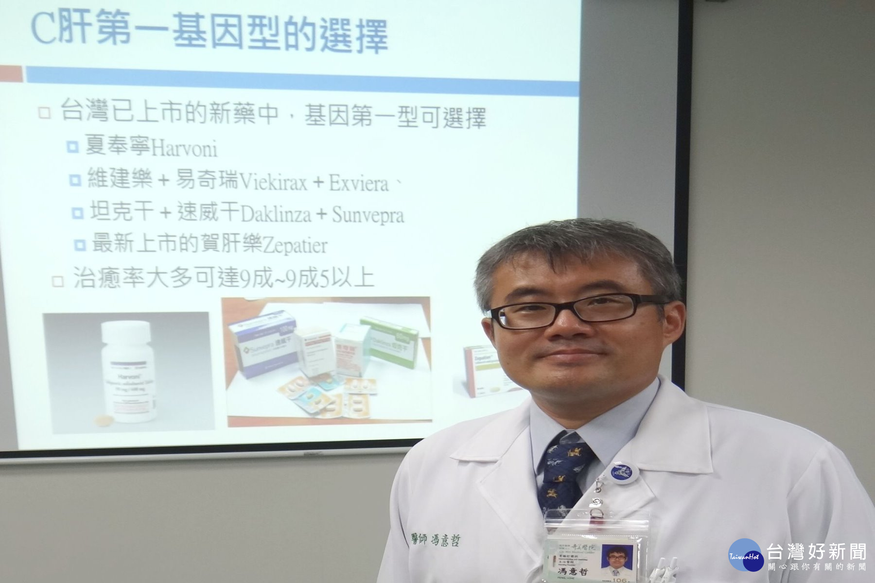 馮意哲醫師表示,C型肝炎被稱為無症狀疾病,病人不會有症狀產生,也不會感到不適,盛行率在台灣約為4.4%,帶原者約42萬人,另有約30萬人受到感染。2014年,C型肝炎的治療,已經從干擾素注射合併口服雷巴威靈,進入使用全口服抗C肝病毒藥物的新時代。新全口服藥最大好處是治癒率大幅提升到9成以上,甚至超過9成5,且副作用甚小,療程可縮短至12~24週。