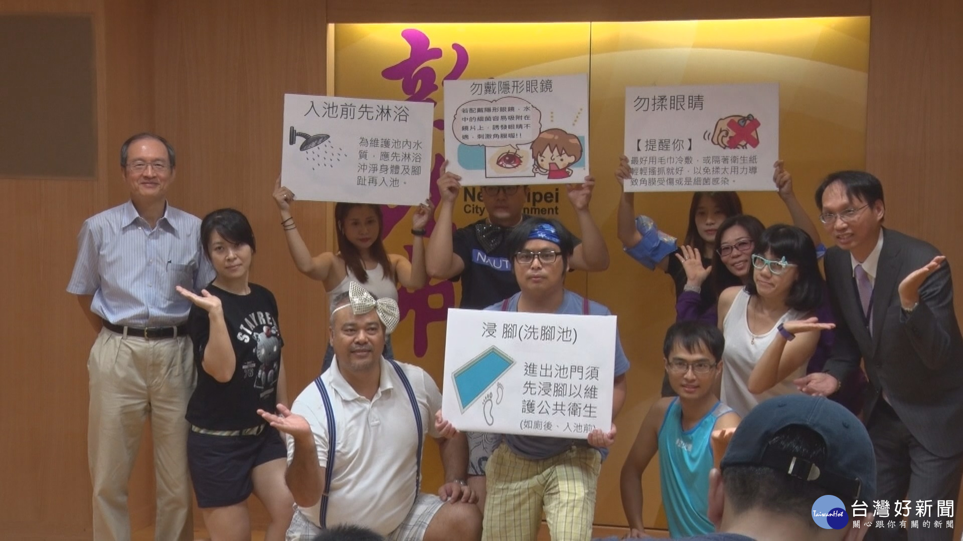 新北市衛生局副局長許朝程表示,泡湯或游泳入池前要謹記「脫鞋、淋浴、浸腳、入池」4個步驟,讓個人衛生在入池前做得更徹底。