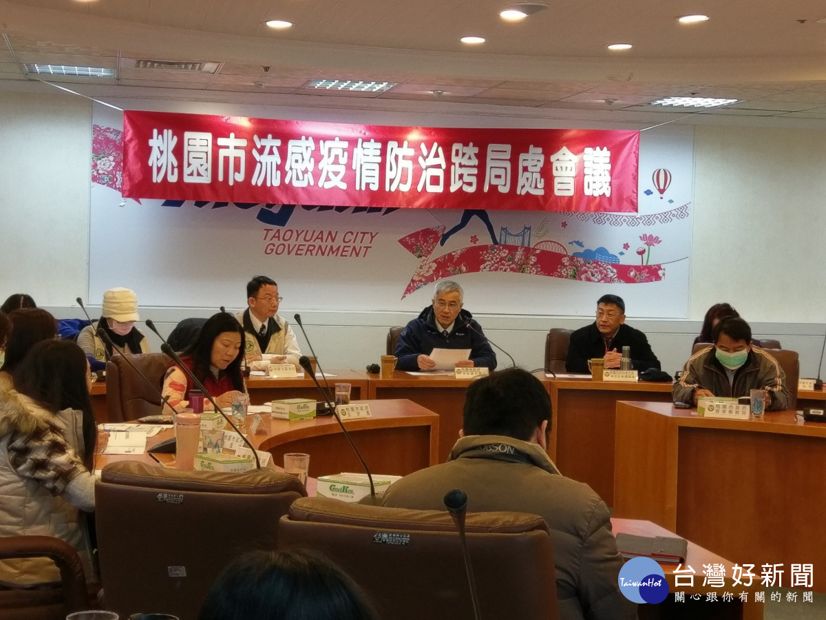 桃園市政府召開跨局處會議,由李憲明秘書長主持,落實流感防疫之相關防治措施,避免造成流感群聚事件。