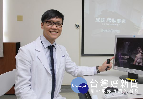 生活勞累或上班壓力太大,致使體內病毒活化長出帶狀皰疹,成醫皮膚科劉承翰醫師呼籲注意日常保健。(記者陳昭宗拍攝)